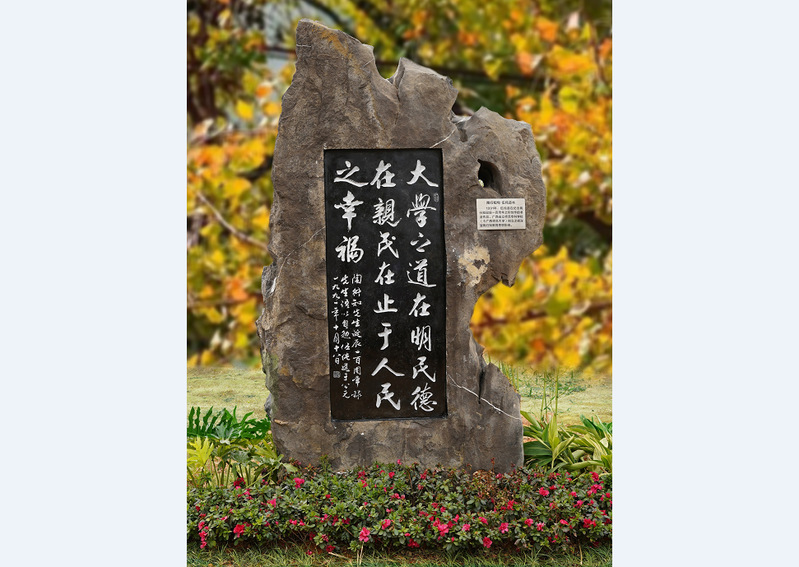 雁栖湖是雁山校园内以湖面为中心、与相思江相连的自然湖,风光旖旎,湖水清澈。每年春秋将会有成群的大雁或白鹭来湖中栖息,动静结合,诗情画意,故而得名。近年来,在建设“大学人文实验室”的理念下,汇集与学校相关的历代文人墨客的诗、书、画镌刻于石碑之上,立于雁栖湖畔,独特的碑刻文化将进一步彰显学校深厚的历史人文底蕴。